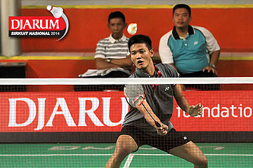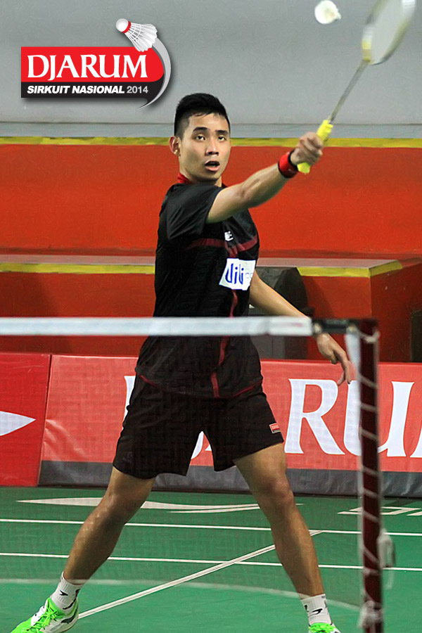 Hermansyah (Jaya Raya) bersiap menghadang serangan dari Kho Henrikho (Djarum Kudus)