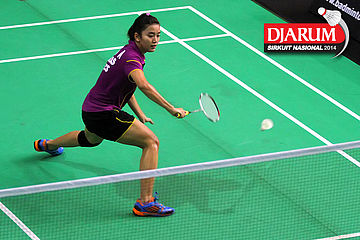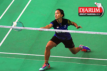 Arinda Sari Sinaga (PB Djarum) berhasil menggapai pengembalian dari Elizabeth Purwaningtyas (SGS PLN)