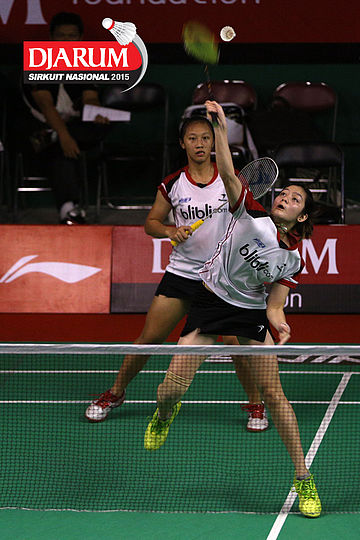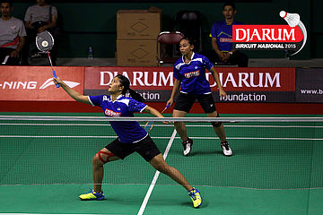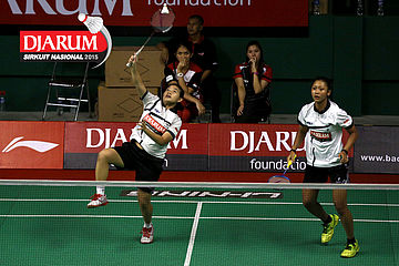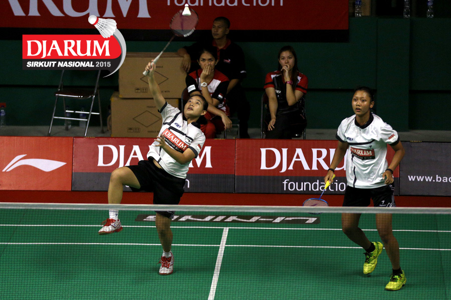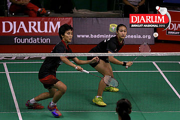 Aldira Rizky/Lisa Ayu (Djarum Kudus) bersiap menyambut pengembalian.