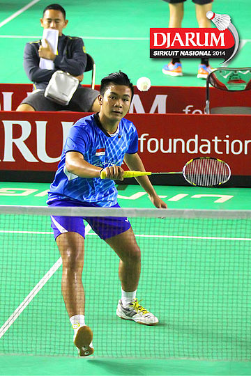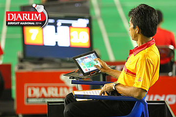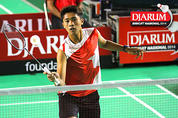 Hilmi B (PPLP Sulut) bersiap menyambut serve dari M. Zahrul Sani (Sarwendah)