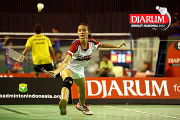 Silvi Wulandari (Djarum Kudus) menyambut pengembalian dari Choirunnisa (Mutiara Cardinal).
