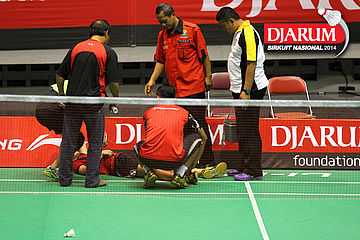 Karina Ria (PB Djarum) saat mendapatkan pertolongan medis.