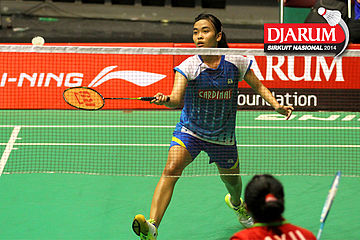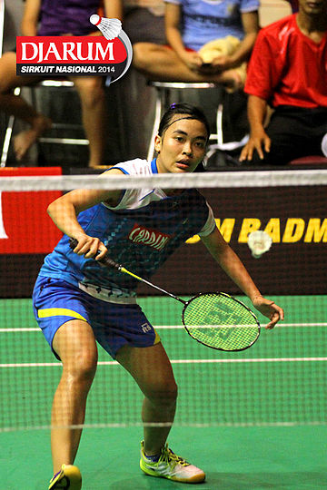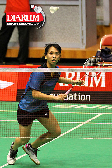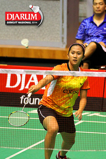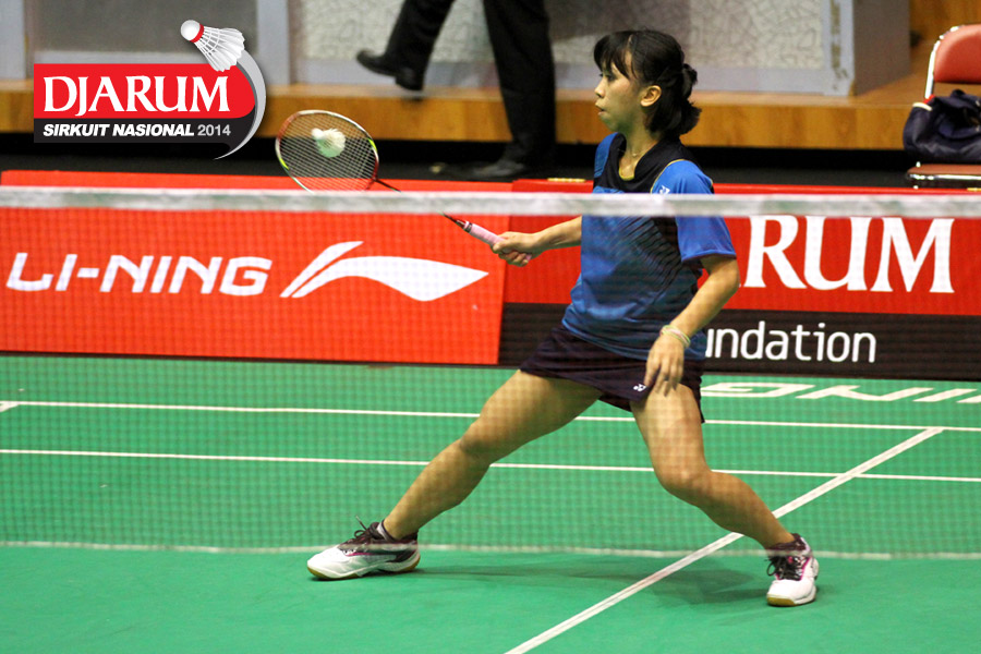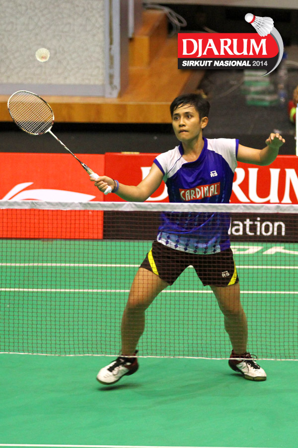 Putri Sekartaji (Mutiara Bandung) bersiap menyambut pengembalian dari Dinar Dyah Ayustine (PB Djarum).