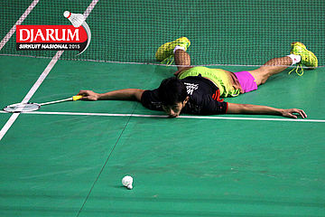 Wisnu Yuli (Djarum Kudus) terjatuh