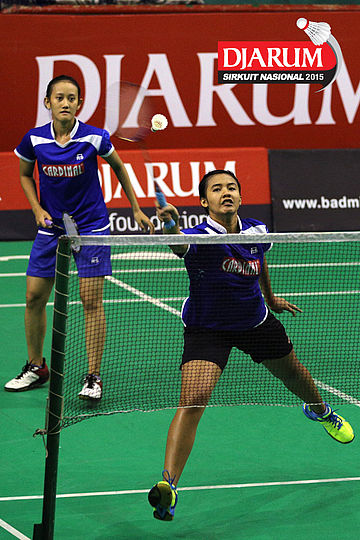 Devi Tika/Keshya Nurvita (Berkat Abadi) mengembalikan shuttlecock
