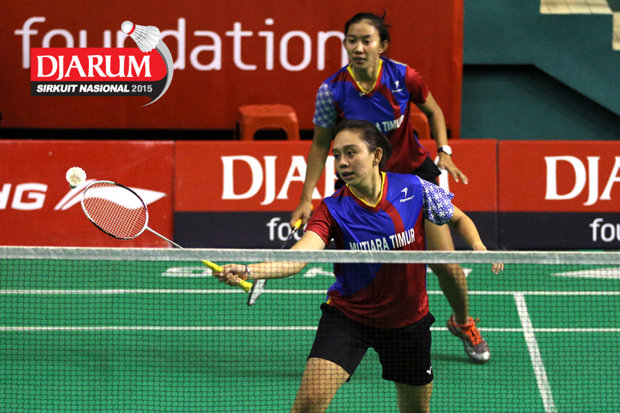 Meiliana Jauhari/Vita Marissa (Djarum Kudus) mengembalikan shuttlecock