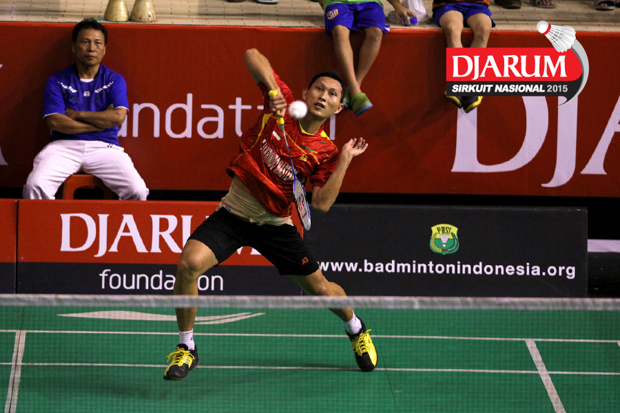Sony Dwi Kuncoro (Tjakrindo Masters) mengembalikan shuttlecock