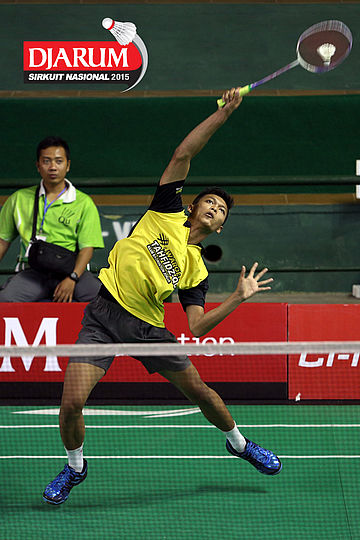 Mirza Amar (Salvio Pontianak) mengembalikan shuttlecock.