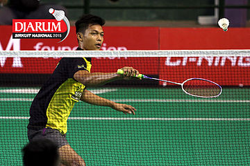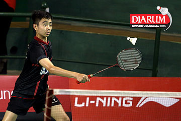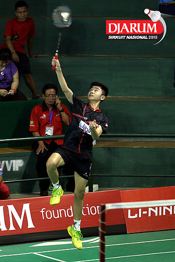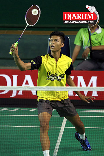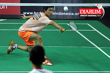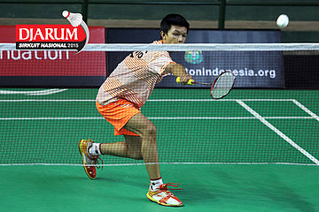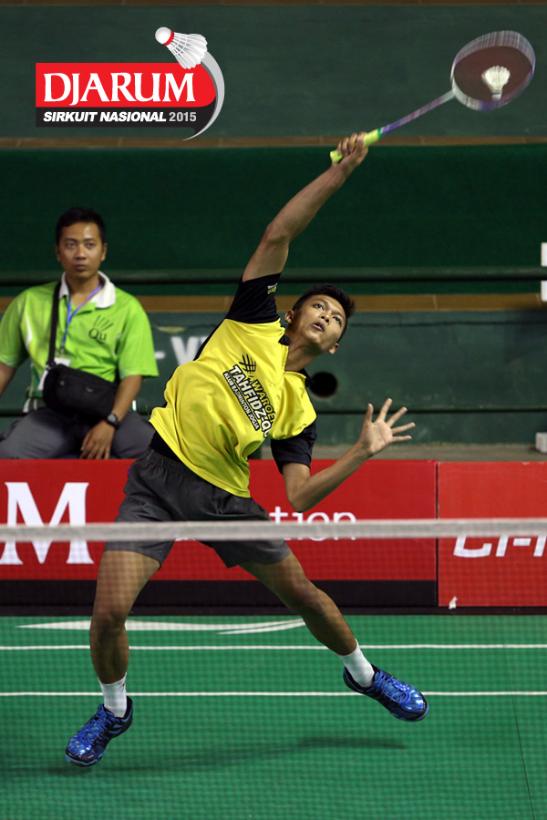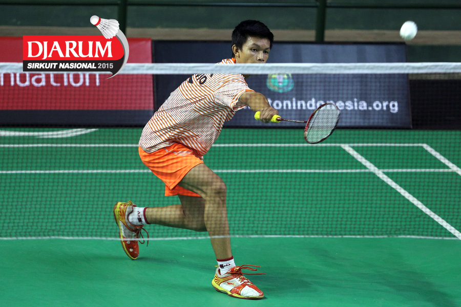 Alberto Alfin (Djarum Kudus) mengembalikan shuttlecock.