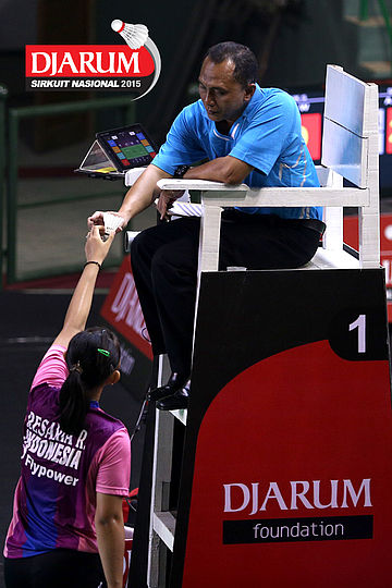 Salah satu Empire saat memeriksa kondisi shuttlecock.