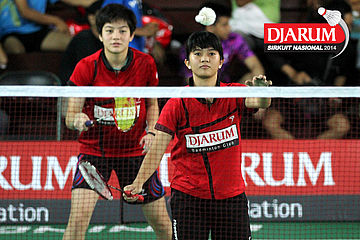 Aldika Fanisha Gea/Tania Oktaviani (PB Djarum) sebelum memulai pertandingan
