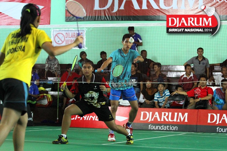 Deni Surya/Nabila (Semen Gresik) berhasil menghadang serangan yang dilepaskan Rizal May/Tabita Christian (Hi Qua Wima)