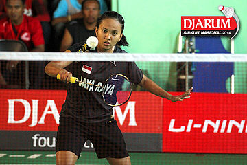 Rena Suwarno (Jaya Raya) bersiap menyambut pengembalian dari Ganis Nurrahmandani (Pertamina)