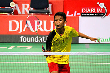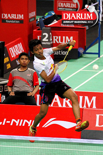 Ahmad Indarsa (AKLI Pare-pare) bersiap menyambut pengembalian dari Hadi Saputra (Pengkab PBSI Paser).