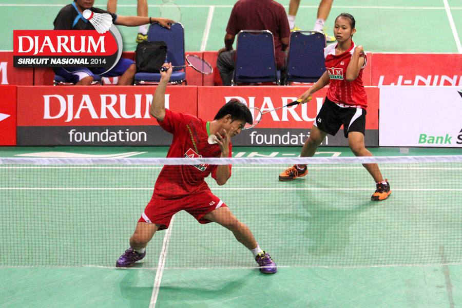 Selamet Nurcahyo/Jessica Wardana (Mutiara Bandung) bersiap menyambut pengembalian dari Hiski/Hasri (Jaya Raya Suryanaga).