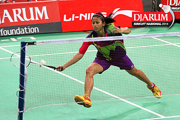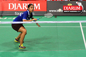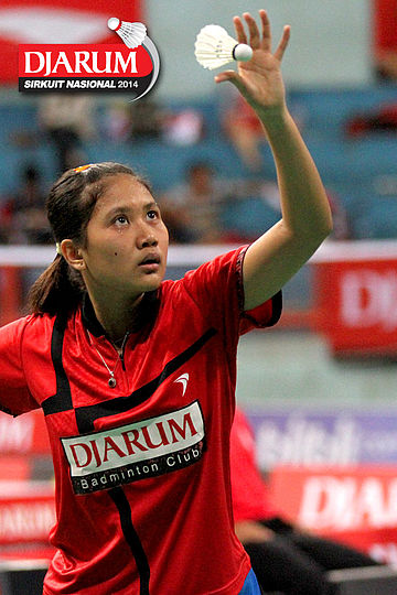 Rena Asela (PB Djarum) bersiap melakukan serve.