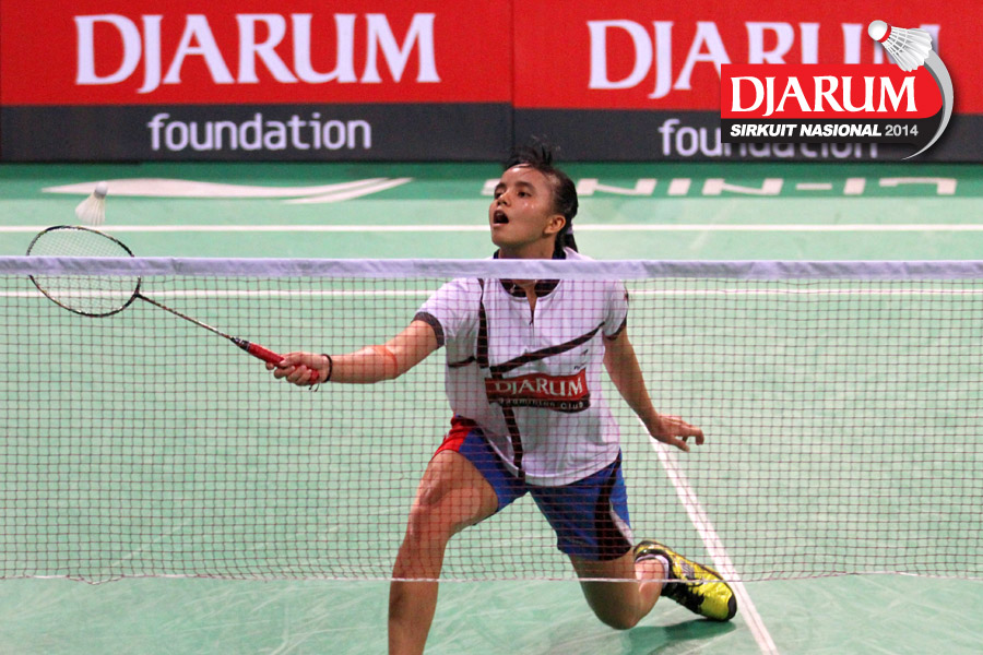 Arinda Sari Sinaga (PB Djarum) harus jatuh bangun meladeni perlawanan Rena Suwarno (Jaya Raya).