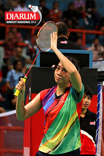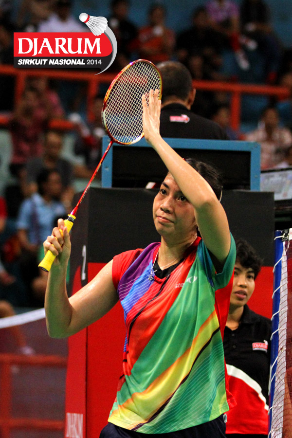 Adriyanti Firdasari (Jaya Raya) memberikan apresiasi kepada seluruh penonton di GOR Sudiang Makassar yang sudah mendukung dirinya.