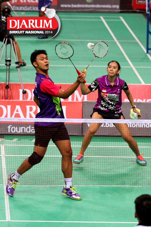 Ardiansyah Putra/Devi Tika Permatasari (Berkah Abadi Banjarmasin/SGS PLN) berhasil menghadang serangan yang dilepaskan pasangan Arsya Isnanu/Meiliana Jauhari (PB Djarum).