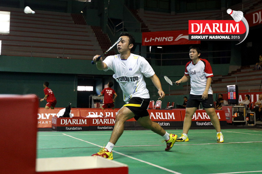 Trikusuma Wardhana/Meiliana Jauhari (Suryanaga/Djarum Kudus) mengembalikan shuttlecock ke arah Ardiansyah Putra/Devi Tika Permatasari (Berkat Abadi).