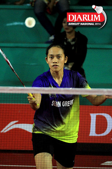 Aprilia Yuswandari (Semen Gresik) bersiap menyambut pengembalian dari Febby Angguni (Tjakrindo Masters)