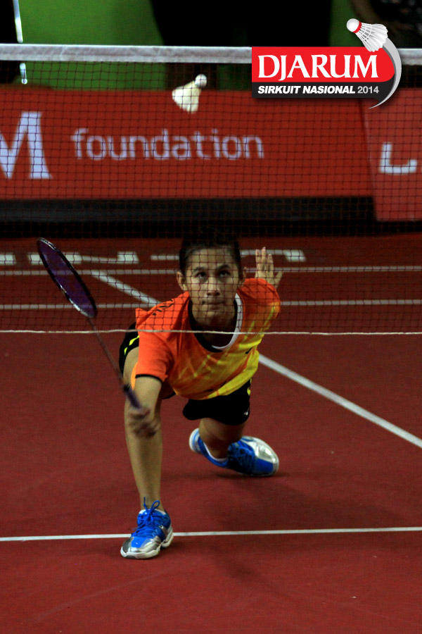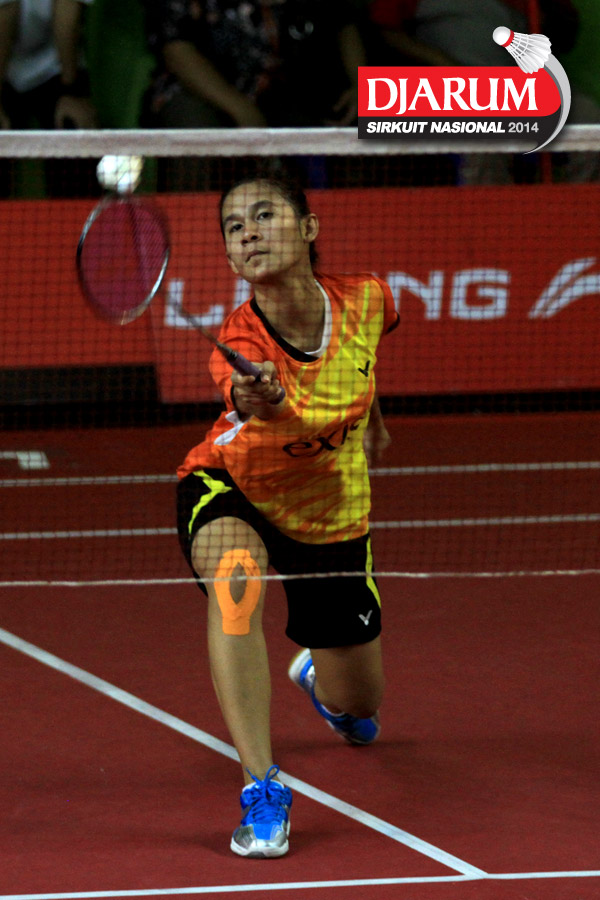 Febby Angguni (Tjakrindo Masters) harus jatuh bangun meladeni perlawanan Aprilia Yuswandari (Semen Gresik)