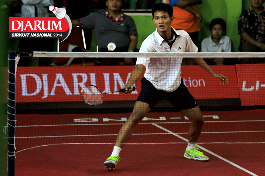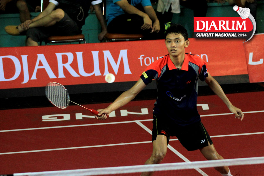 Redy Perdana (Pusdiklat Telkom) berusaha menggapai pengembalian dari Fahmi Mubarok (Candra Wijaya)