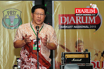 Kabid Pemasaran & Sponsorship PP PBSI, Yoppy Rosimin saat memberikan sambutan