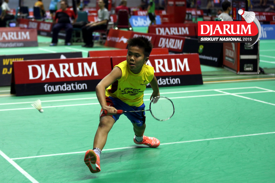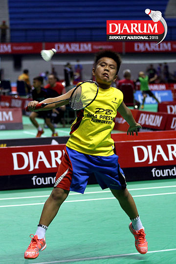Yordan A (Bina Prestasi Purwokerto) menyambut shuttlecock.