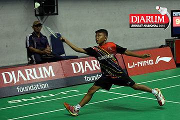A. Nur (Diamond Baru) menyambut pengembalian shuttlecock.