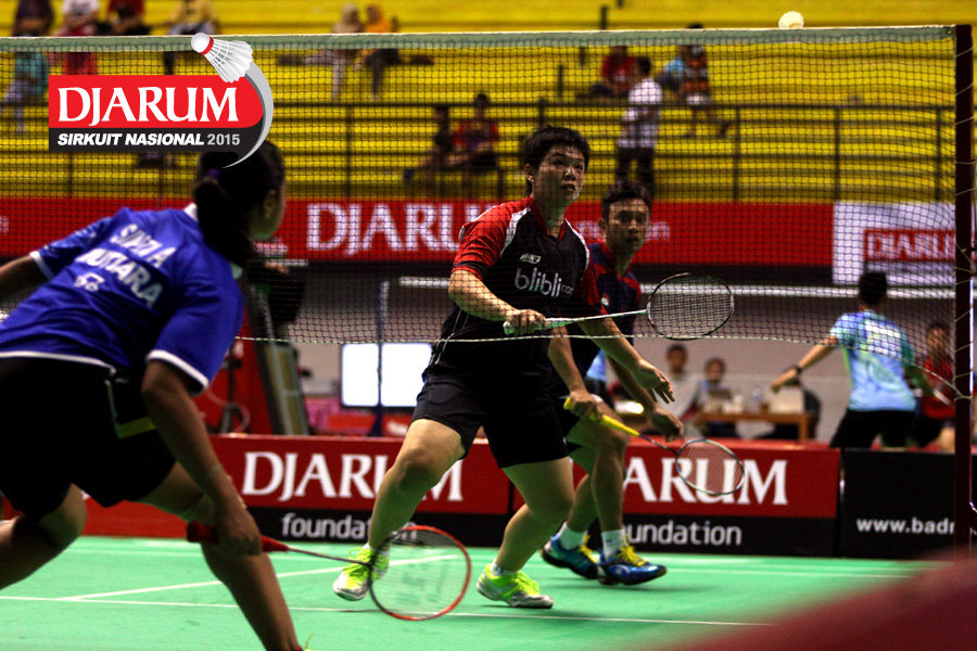 Jeka Wiratama/Della Augustia (Djarum Kudus) menyambut pengembalian.