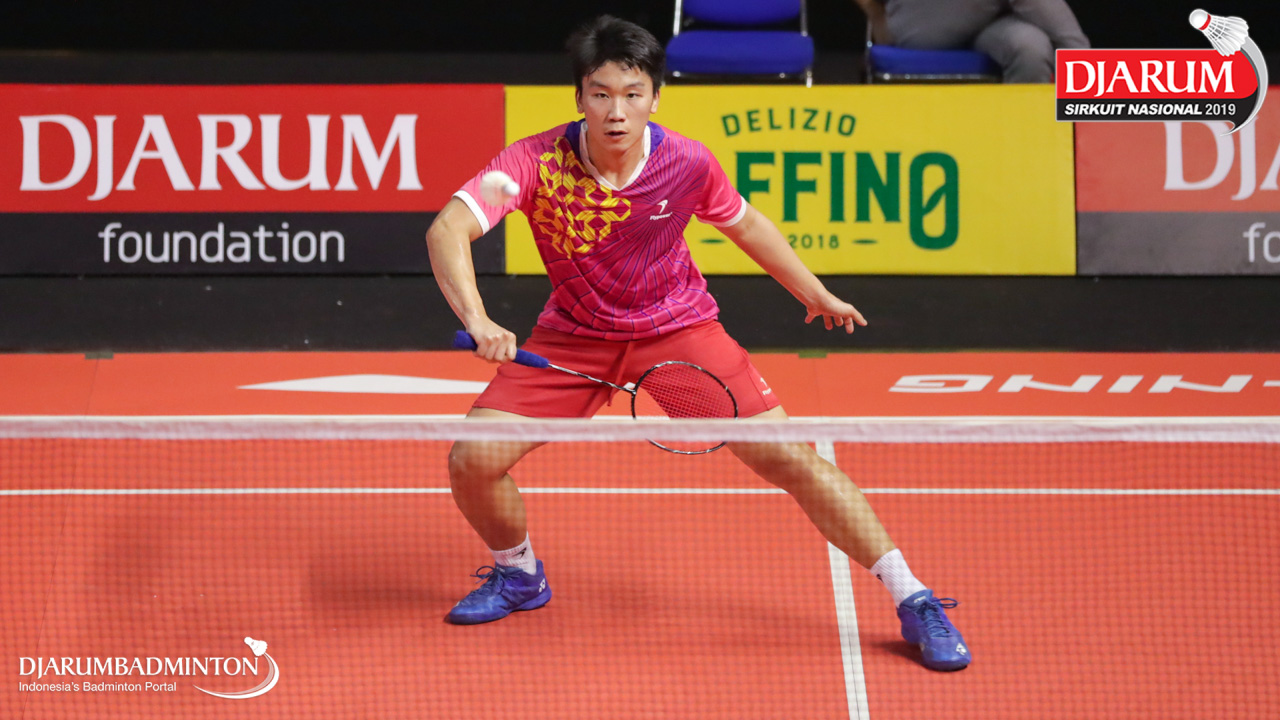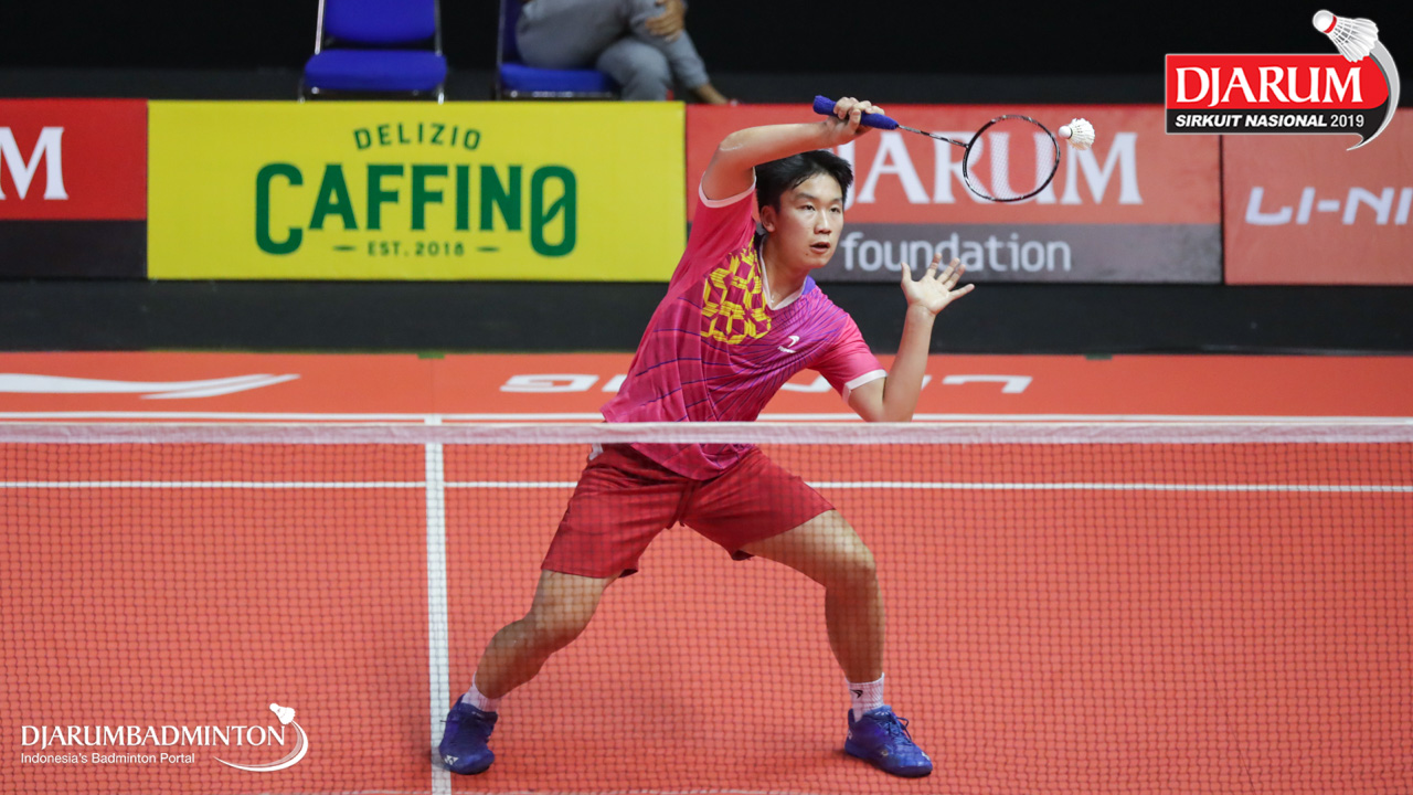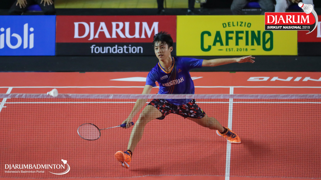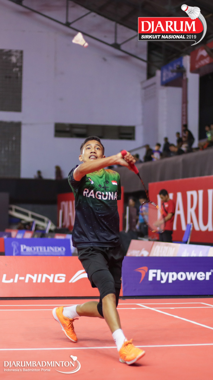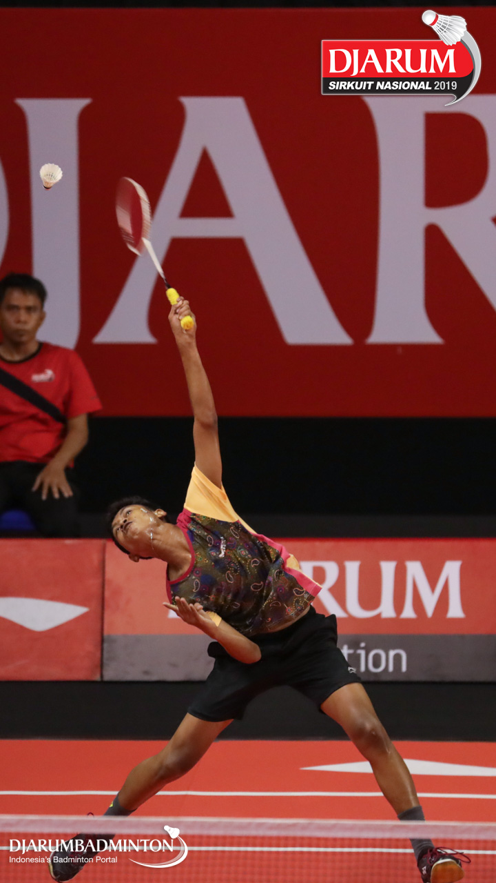 Jafar Hidayatullah (Ardes Rajawali Isvill) bersiap menyambut shuttlecock