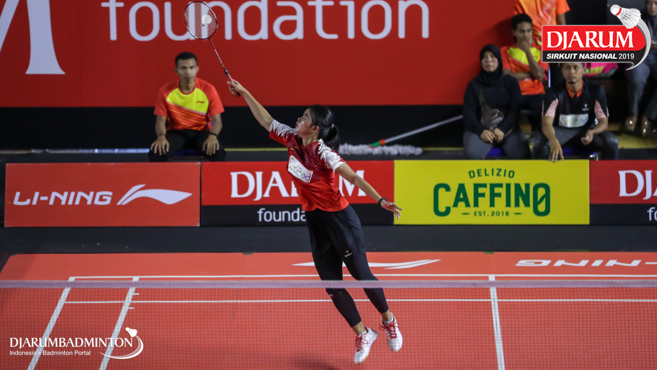 Debora Pungky Cahyadewi (PB. Inti Badminton Club Klaten) menyambar pengembalian