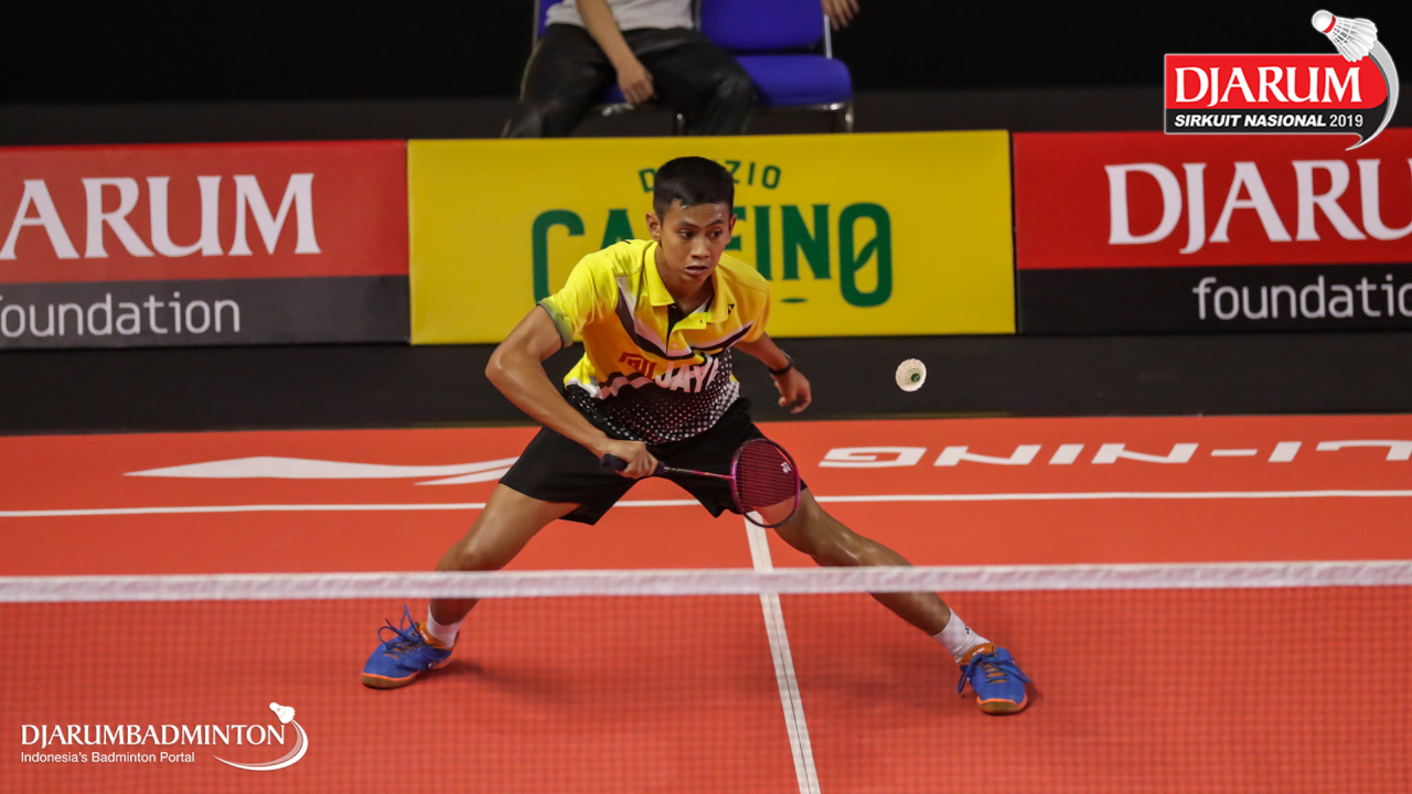 Abdul Barry Worontika (PB. Warna Agung Perkasa, Mataram) bersiap menyambut shuttlecock