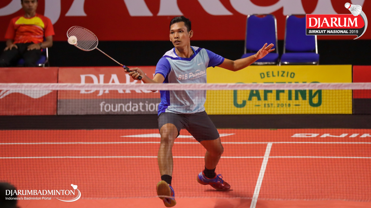 Abdul Barry Worontika (PB. Warna Agung Perkasa, Mataram) menyambut shuttlecock