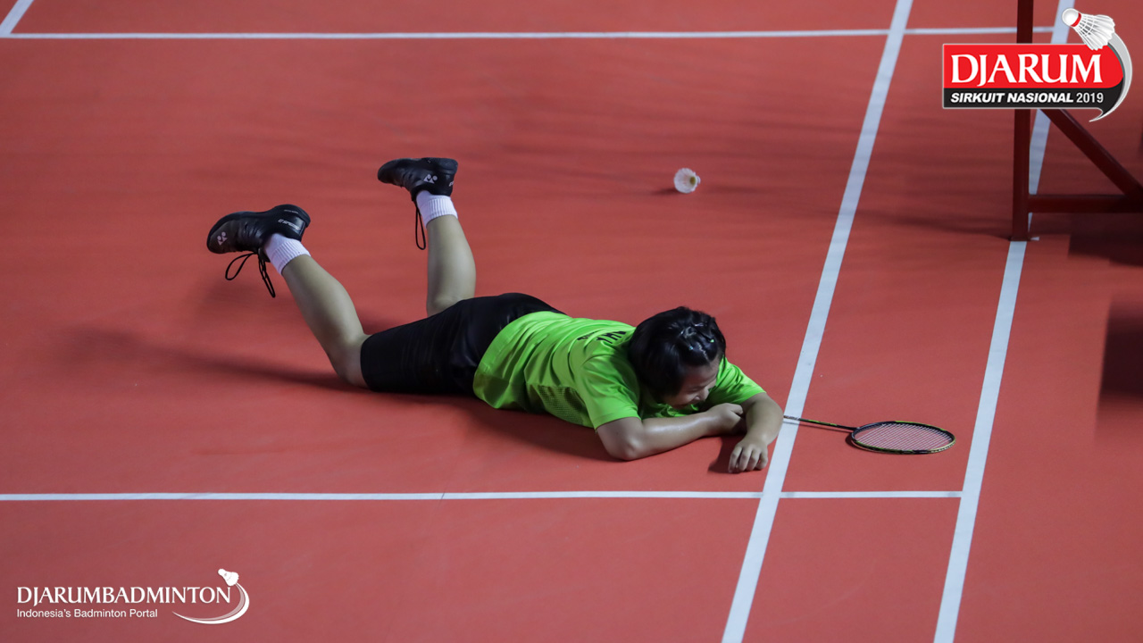 Elok Machsunnah (Bayu Kencana, Pasuruan) bersiap menyambar shuttlecock