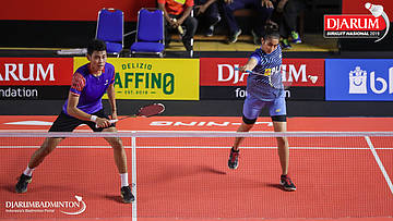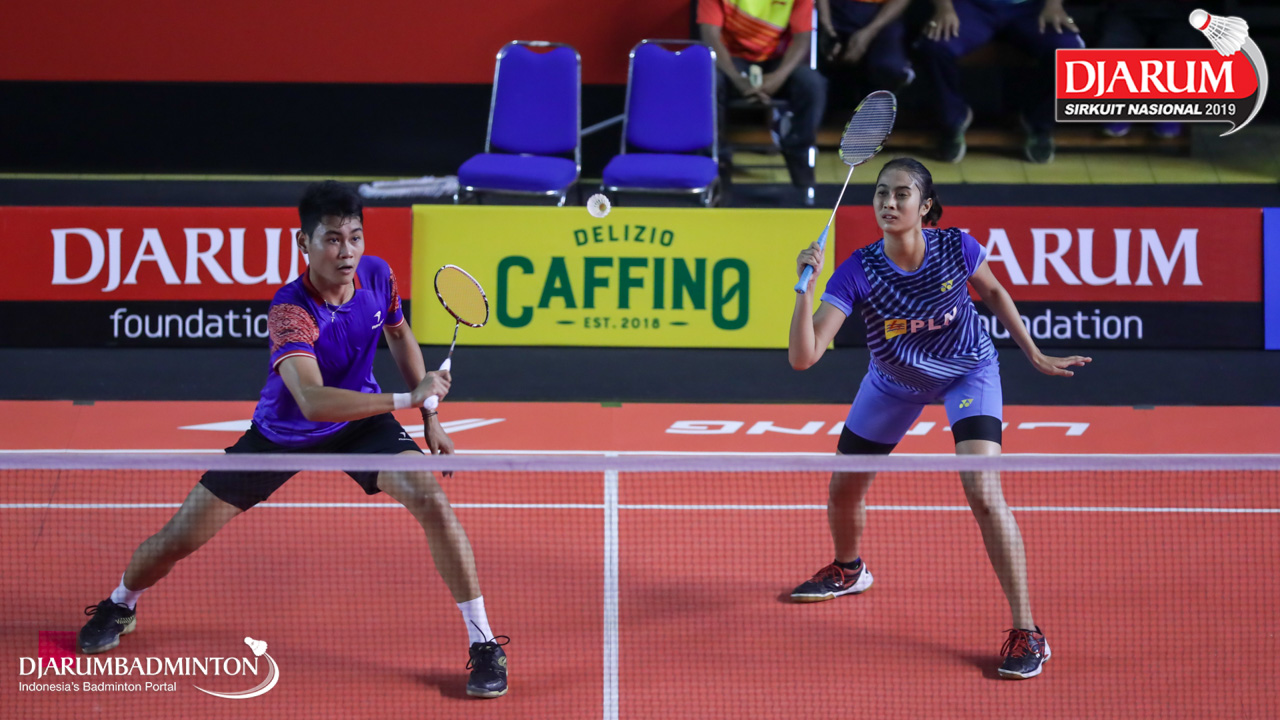 Joshua David Wardana+Dinda Haura Salsabila Suhana (Tangkas , Jaksel+Sangkuriang Graha Sarana PLN Bandung) bersiap menyambut shuttlecock