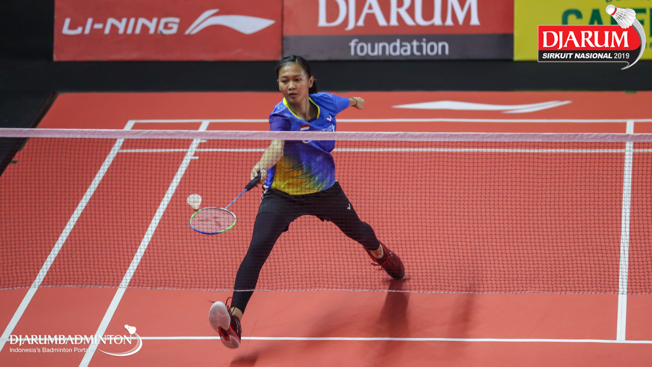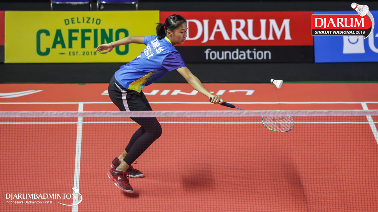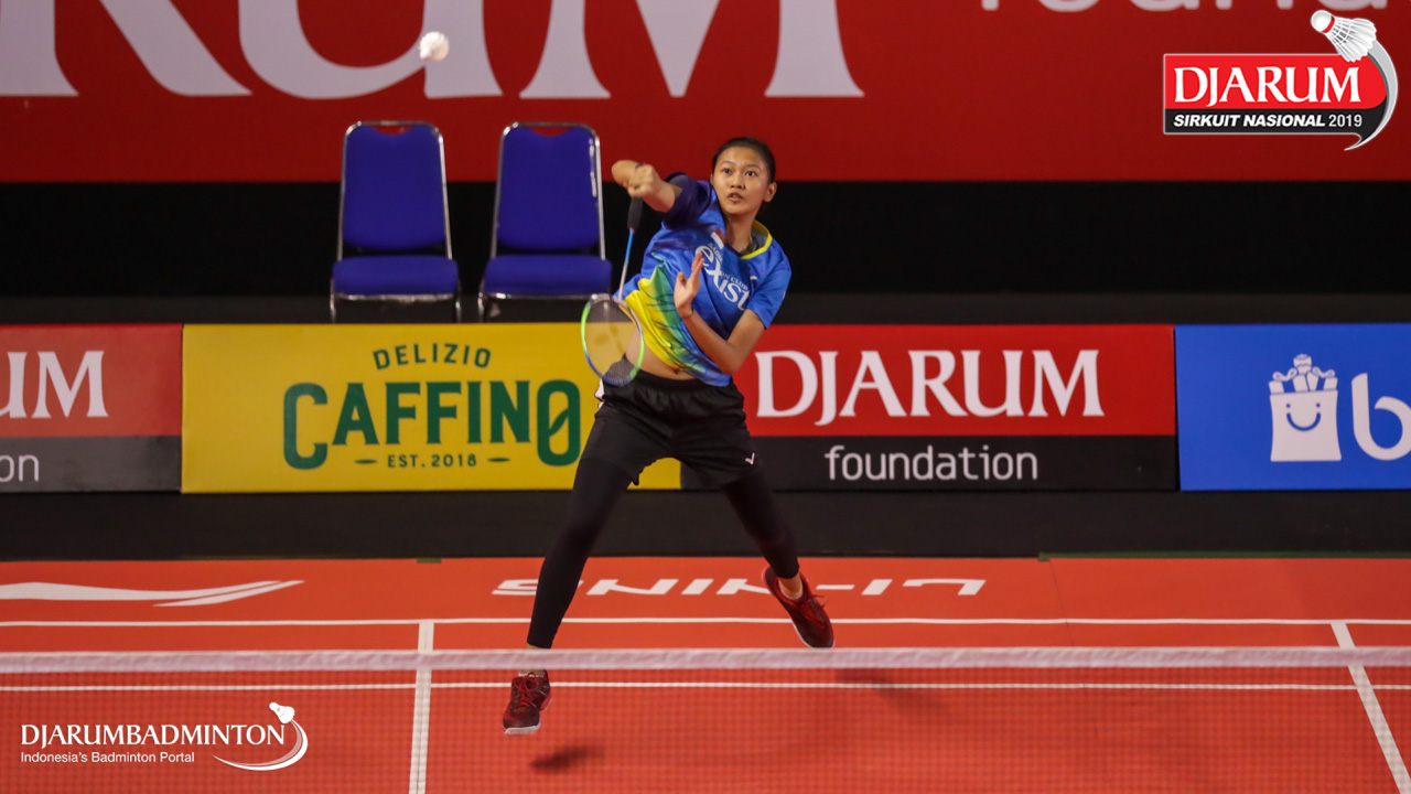 Siti Sarah Azzahra (Exist Badminton Club) menyambut shuttlecock