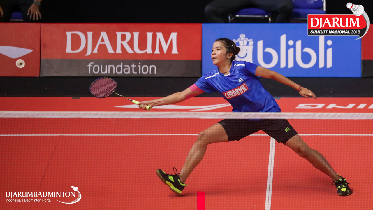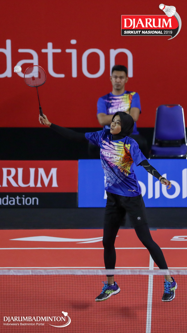 Dinar Dyah AYUSTINE (Pertamina Fastron, Jakut) bersiap menyambut shuttlecock