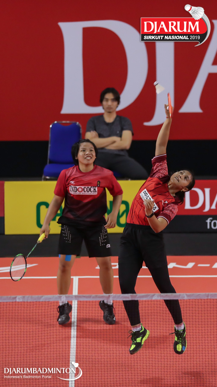 Valenska Karunia Salsyahbillah+Valensky Karunia Salsyahbilla (PB. Gemilang, Mataram) menyambar shuttlecock