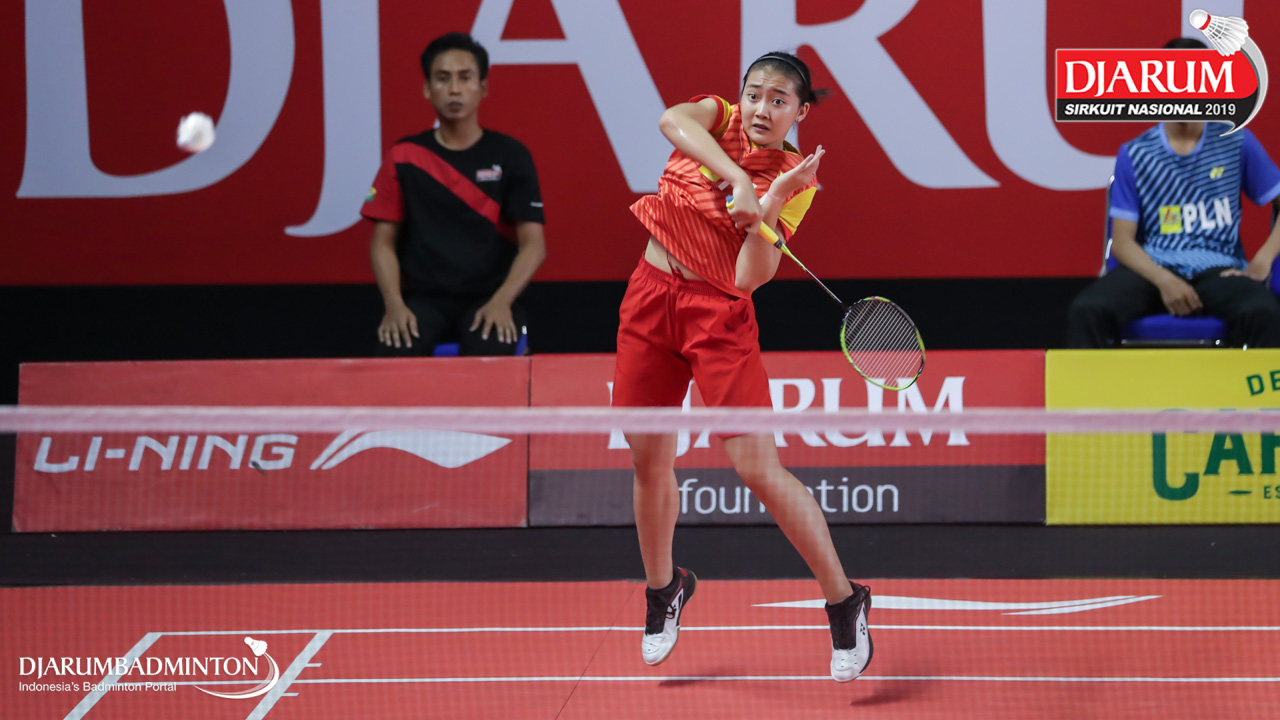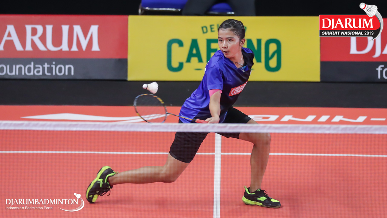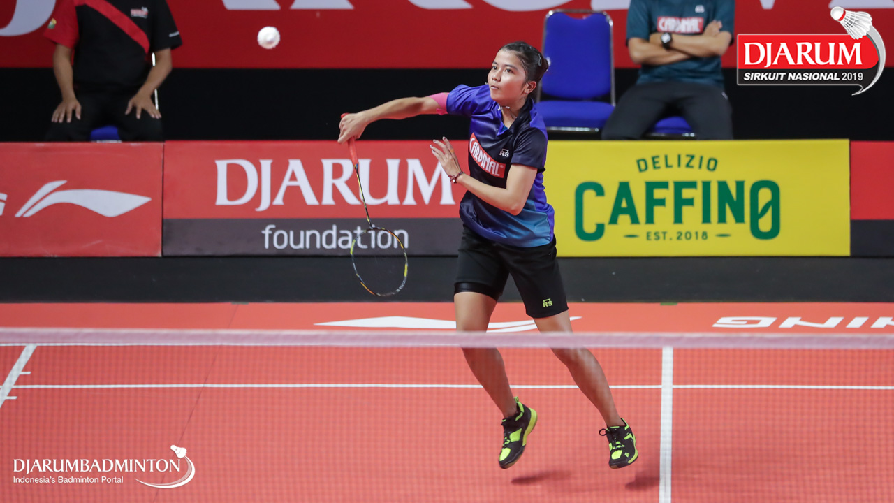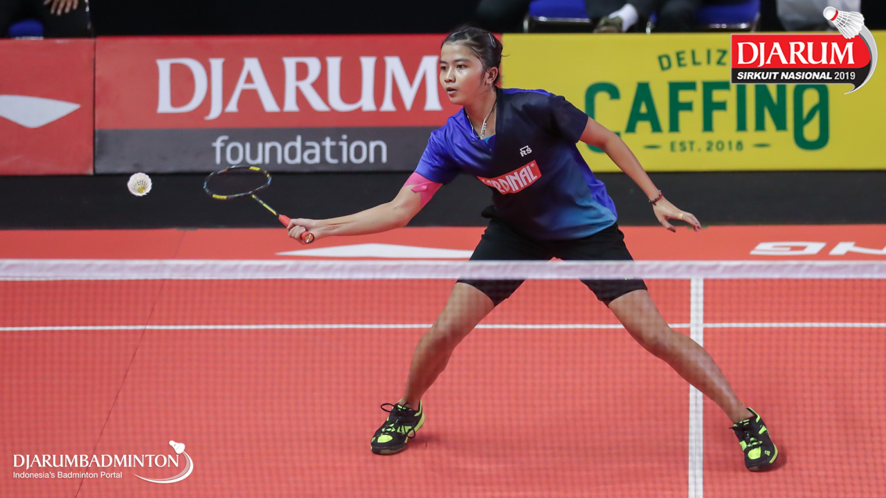 Gina Revina Aristy (Mutiara Cardinal, Bandung) bersiap mengembalikan serangan