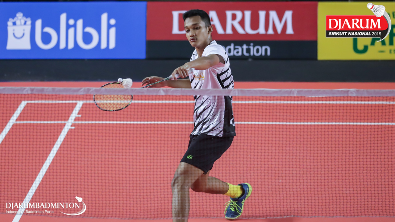 Ahmad Raihan Ishak (PB Victory Bogor, Jaktim) mengembalikan shuttlecock