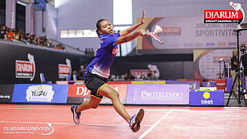 Saifi Rizka Nurhidayah (Mutiara Cardinal, Bandung) menyambut shuttlecock