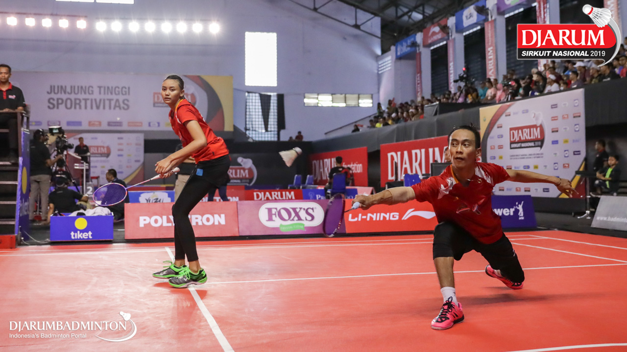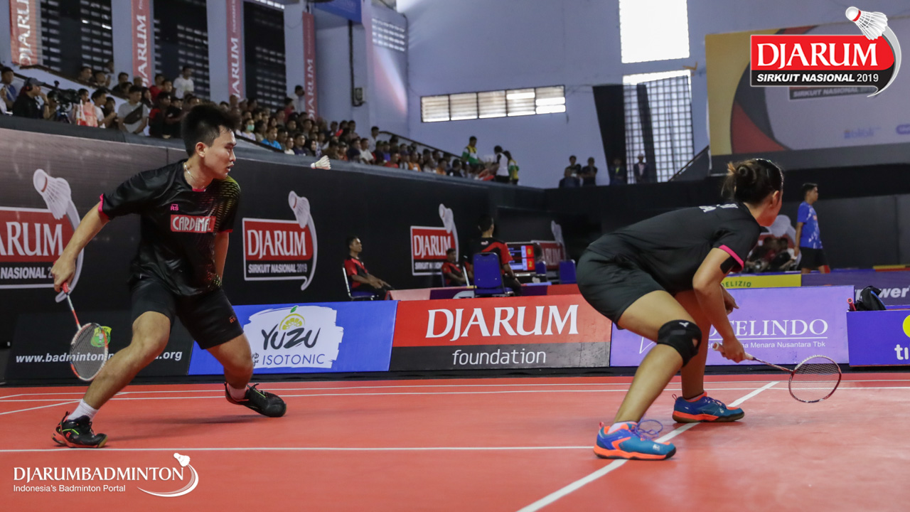 Reinard Dhanriano+Rayhan Vania Salsabila (Mutiara Cardinal, Bandung) bersiap menahan serangan