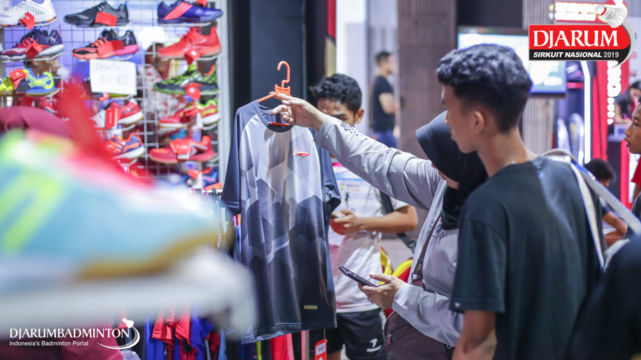 Beberapa pengeunjung yang sedang berbelanja di booth Lining