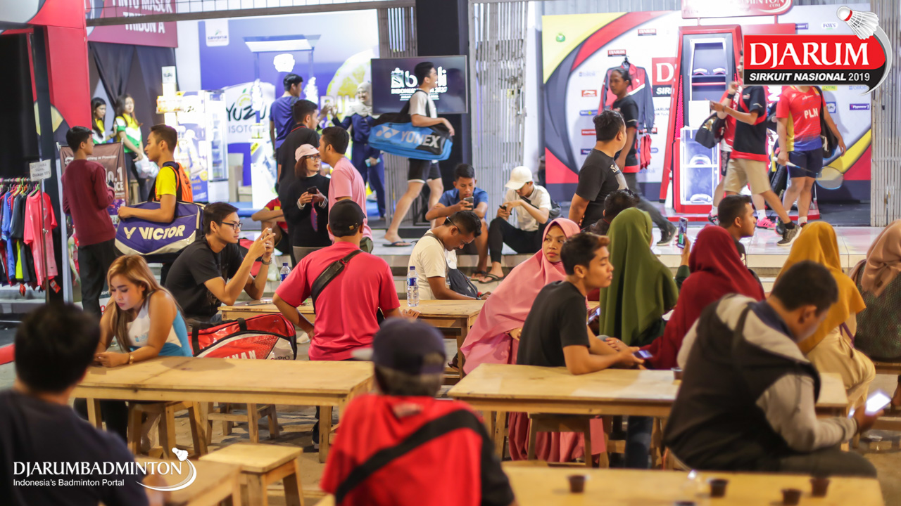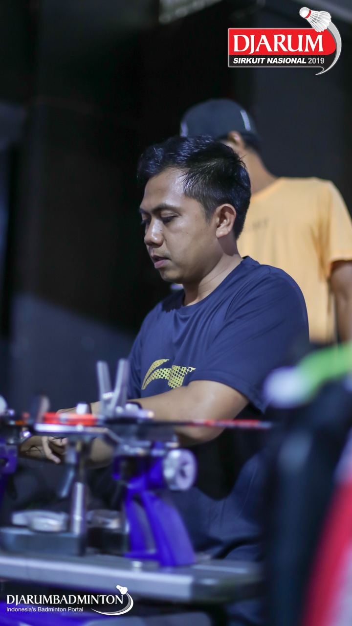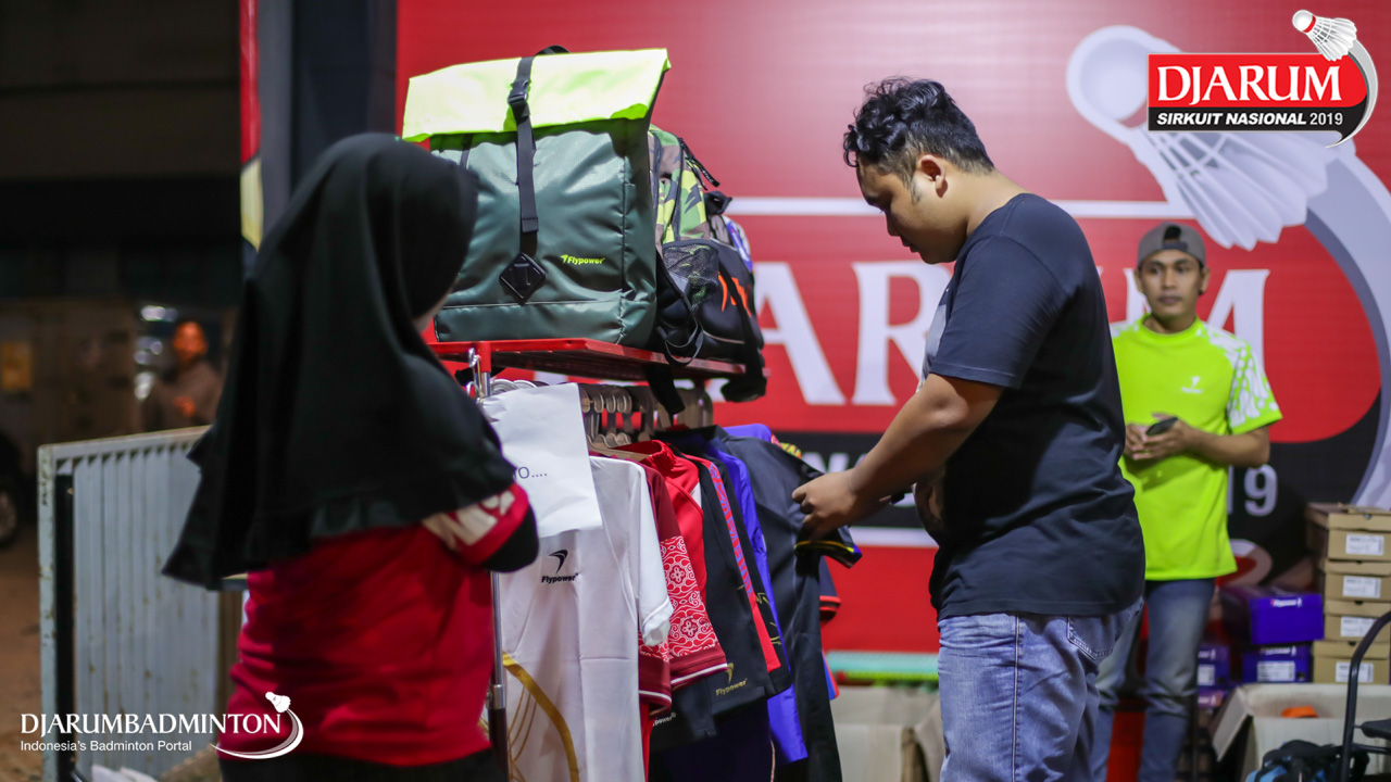 Dua orang pengunjung saat memilih raket di booth Flypower
