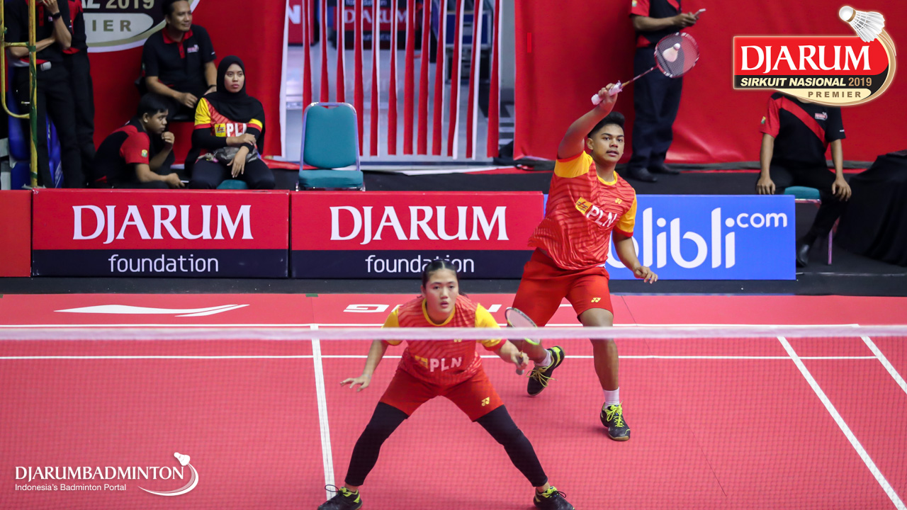 Rexky Afdillah+Salsabila Prameswara Haryanto (Sangkuriang Graha Sarana PLN Bandung) mengembalikan shuttlecock