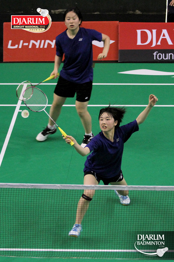 Someya Nanami/Uchiyama Chihiro (Jepang) bersiap menyambar pengembalian