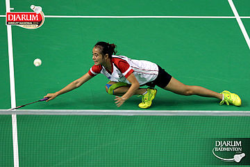 Silvi Wulandari (Djarum Kudus) melepaskan serangan