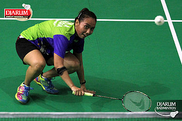 Mia Mawarti (Guna Dharma) mengembalikan shuttlecock